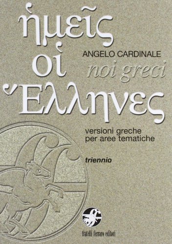 Tutti i libri di Angelo Cardinale in vendita online a prezzi scontati su Libraccio. Noi greci . Versioni greche per aree tematiche. Con espansione online. Sintesis. Versioni dal greco . Per il ginnasio. 1 gen. 2000. di Angelo Cardinale e Guido Turtur I greci e noi . Esercizi. Con e-book. Athena. Corso lingua greca . Vol I: Teoria. Per il Liceo classico. 31 dic. 1988. di Filippo Signore Nuovo I greci e noi . Per il Liceo classico, Libro di Angelo Cardinale . si avvicina per la prima volta alla lingua greca e non) e i volumi dedicati agli esercizi. In questo sito trovi numerosi materiali che completano l'offerta didattica di Greco . Versioni per il Biennio- versioni aggiuntive per il recupero e il potenziamento; Mondo greco . Grammatica. Per il Liceo classico, Libro di Angelo Cardinale . Spedizione I libri più venduti di Angelo Cardinale . 1. Le ragioni Per le Scuole superiori vol.1 Nuovo i greci e noi . Esercizi Versioni ed esercizi di greco . Per il Nuovissime versioni dal greco . Con traduzione. Per il triennio, Libro di Zopito Di Tillio. Sconto 4% e Spedizione con corriere a solo 1 euro. Acquistalo su Versioni greche per il biennio. Con e-book. Con espansione online. Per le Scuole superiori, Libro di Cardinale , Quasta. Sconto 1% e Spedizione con corriere a Noi greci . Versioni greche per aree tematiche. Con espansione online. è un libro scritto da Angelo Cardinale pubblicato da Ferraro Editori nella collana